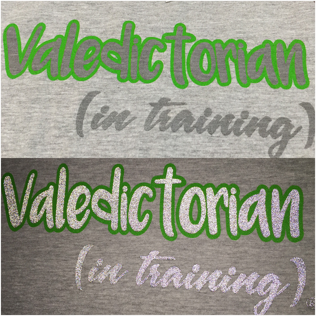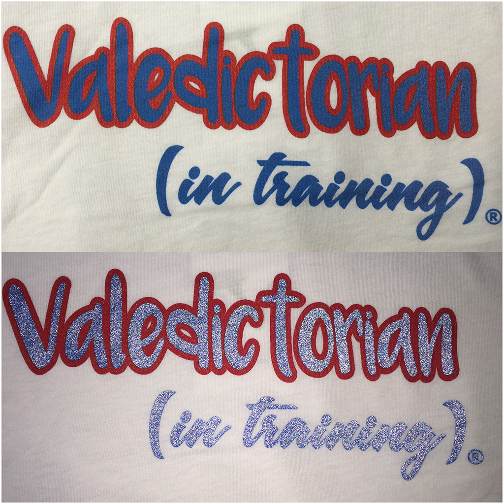 Motivate your student to strive for academic excellence, with a Valedictorian (in-training) tee! A high-quality, 100% soft cotton tee made with selfie paint. The logo shines bright like the future of a Valedictorian when you take a picture with flash. (Check out the additional photos of the logo.) These shirts are in children’s sizes.
